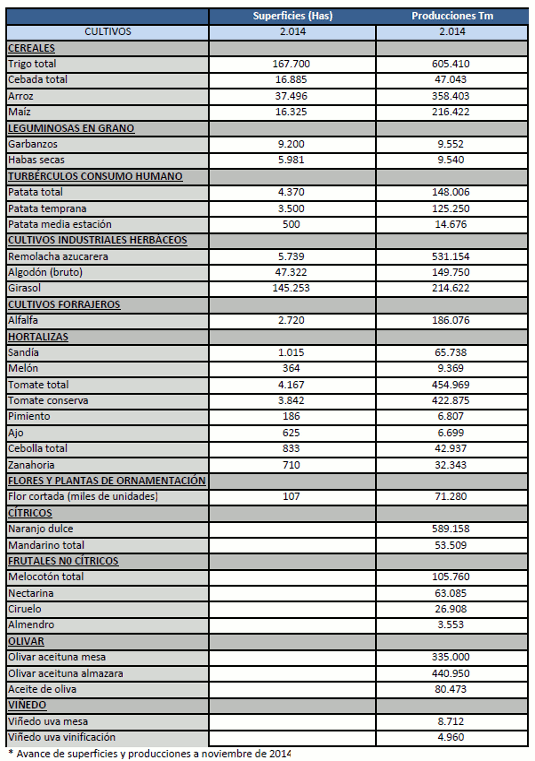 Avance de producciones y superficies agrícolas. Diciembre 2014