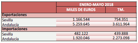 Balanza comercial agroalimentaria de la provincia de Sevilla. Enero-Mayo 2018