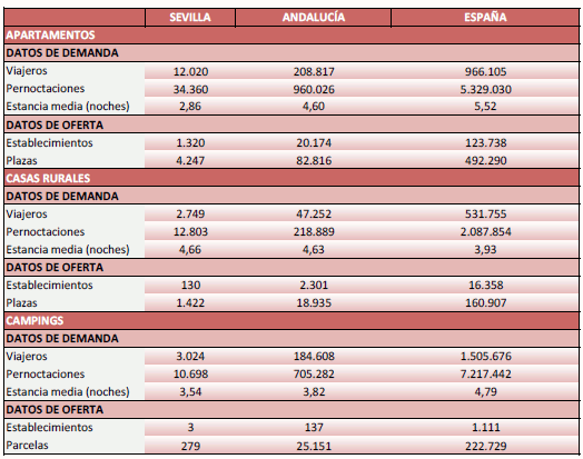 En Agosto de 2020, el total de pernoctaciones de viajeros alojados en los establecimientos extrahoteleros de la provincia de Sevilla alcanza la cifra de 57.861