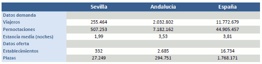 El número pernoctaciones de los viajeros alojados en hoteles de la provincia de Sevilla crece un 20,25% en Agosto de 2015, respecto al mismo mes del año anterior
