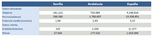 Las pernoctaciones de los viajeros alojados en hoteles de la provincia de Sevilla crecen un 23% en Enero de 2015, respecto al mismo mes del año anterior