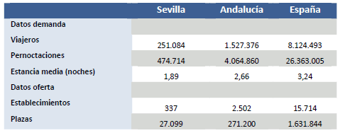 Las pernoctaciones hoteleras en la provincia de Sevilla, ascienden en el mes de Mayo de 2013 a 474.714
