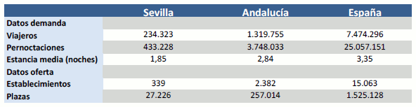 En Octubre de 2013 las pernoctaciones hoteleras registradas en la provincia de Sevilla, ascienden a 433.228