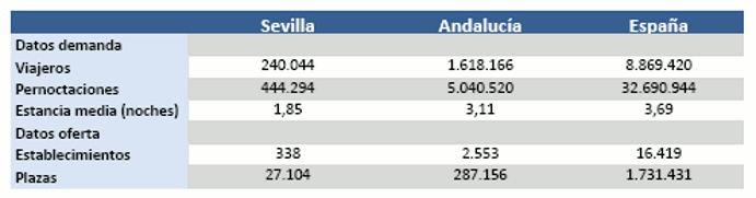 444.294 son las pernoctaciones hoteleras registradas en septiembre de 2013, en la provincia de Sevilla