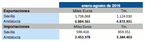 Datos sobre Balanza comercial agroalimentaria de la provincia de Sevilla. Agosto 2016