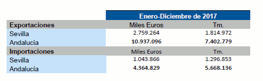 Datos sobre Balanza comercial agroalimentaria de la provincia de Sevilla. Diciembre 2017
