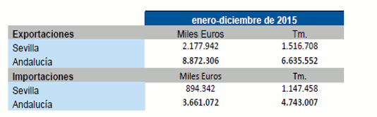 El valor de las exportaciones de productos agroalimentarios de la provincia de Sevilla creció un 3,36% en el periodo Enero-Diciembre de 2015