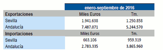 Datos sobre Balanza comercial agroalimentaria de la provincia de Sevilla. Septiembre 2016