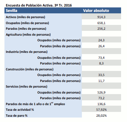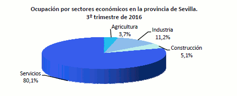 En el tercer trimestre de 2016 crece la ocupación en la provincia de Sevilla en 1,36% y desciende el paro en 13,12% respecto al mismo periodo del año anterior