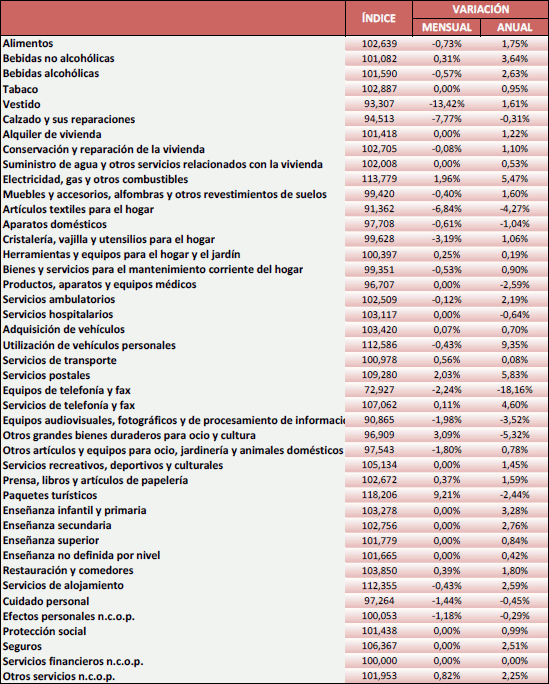 Datos sobre Índice de Precios de Consumo (IPC). Julio 2018 (base 2016)