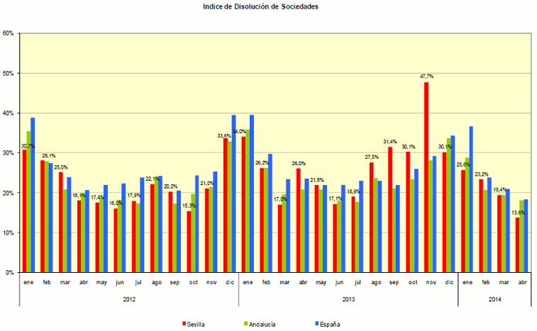 En Abril de 2014 se han disuelto un 40,2% menos de sociedades que en el mismo mes del año anterior