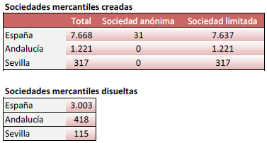 En Diciembre de 2020 se han creado en la provincia de Sevilla 317 sociedades mercantiles. Un 18,7% más que en el mismo mes del año anterior, y baja un -19,5% más que el mes anterior