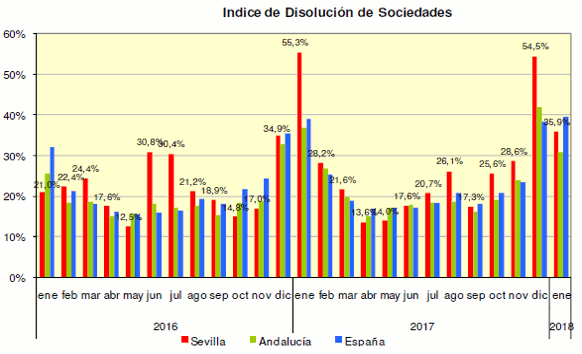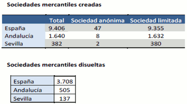En Enero de 2018 se han creado en la provincia de Sevilla 382 sociedades mercantiles, un 21,7% más que el mes anterior y un 20,1% más que el mismo mes del año anterior