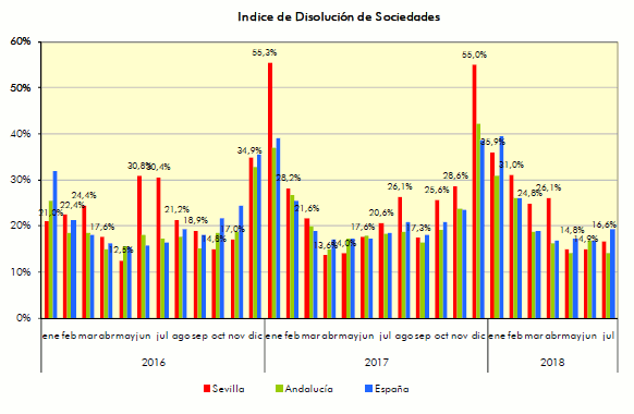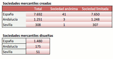 En Julio de 2018 se han creado en la provincia de Sevilla 308 sociedades mercantiles, un 35,1% más que en el mismo mes de 2017, y un -8,3% menos que el mes anterior