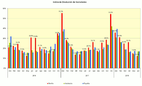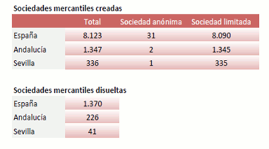 En Junio de 2018 se han creado en la provincia de Sevilla 336 sociedades mercantiles. Un 7,7% más que el año anterior, y un -12,5% menos que el mes anterior