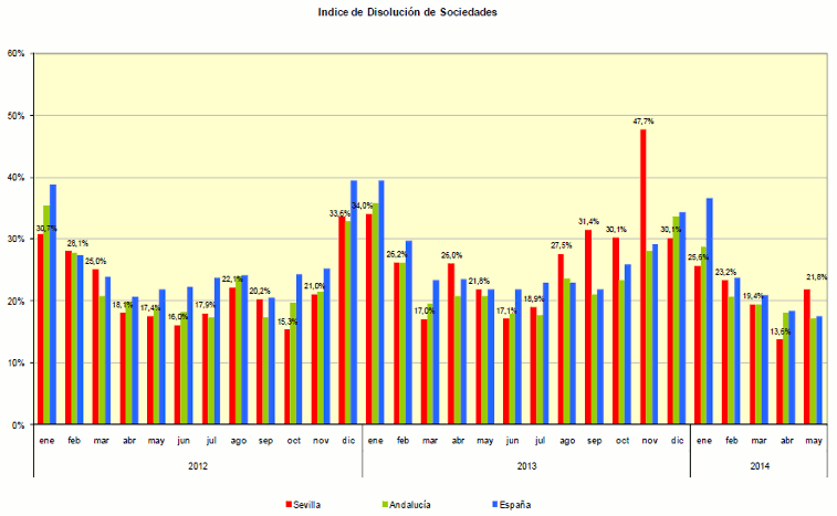 En Mayo de 2014 se han disuelto un 19,5% menos de sociedades que en el mismo mes del año anterior