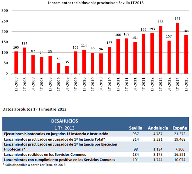 En el primer trimestre de 2013 se recibieron 184 procedimientos de lanzamiento en los servicios comunes de las oficinas judiciales de la provincia de Sevilla