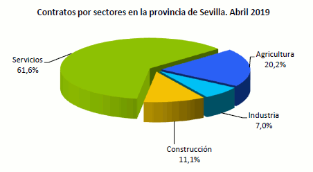 En Abril de 2019, el paro registrado ha descendido en un 5,27% en términos interanuales. Los contratos descienden respecto al mes anterior en un 0,59%
