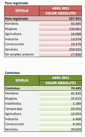 Datos sobre paro registrado y contratos. Abril de 2021
