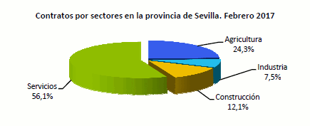 En Febrero de 2017, el paro registrado ha descendido en un 9,56% respecto al mismo mes del año anterior. Los contratos realizados en este mes aumentan un 0,37% en términos interanuales