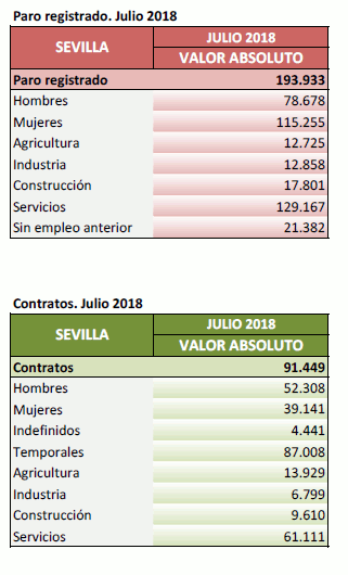 Datos sobre paro registrado y contratos. Julio de 2018