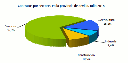 En Julio de 2018, el paro registrado ha descendido en un 3,9% respecto al mismo mes del año anterior. Los contratos aumentan en términos interanuales un 7,95%, así como los indefinidos en un 24,33% y los temporales en un 7,23%
