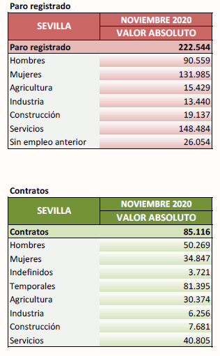 Datos sobre paro registrado y contratos. Noviembre de 2020