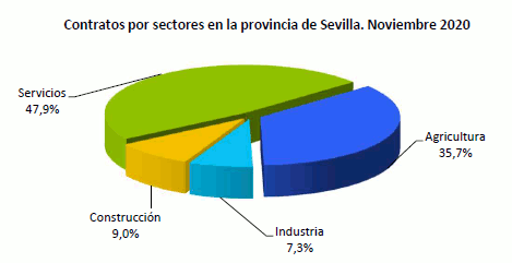 En Noviembre de 2020, el paro registrado ha aumentado en un 0,53% con respecto al mes anterior. Los contratos descienden en un -5,49% en relación al mes anterior