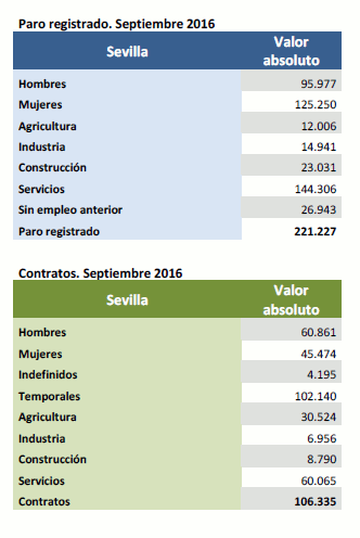 Datos sobre paro registrado y contratos. Septiembre de 2016