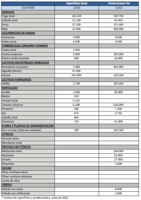 Avance de producciones y superficies agrícolas. Junio 2015