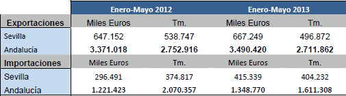 Datos sobre Balanza comercial agroalimentaria de la provincia de Sevilla. Enero - Mayo 2013