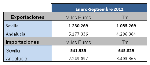Datos sobre Balanza comercial agroalimentaria de la provincia de Sevilla. Enero - Septiembre 2012