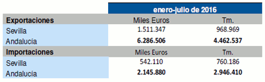 Datos sobre Balanza comercial agroalimentaria de la provincia de Sevilla. Julio 2016