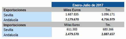 Datos sobre Balanza comercial agroalimentaria de la provincia de Sevilla. Julio 2017
