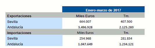 Datos sobre Balanza comercial agroalimentaria de la provincia de Sevilla. Marzo 2017