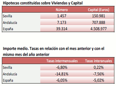 En Enero de 2020, el número de hipotecas sobre viviendas en la provincia de Sevilla es de 1.079. Un 24,7% más que el mismo mes del año anterior