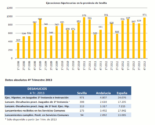 En el 4º trimestre de 2013 las ejecuciones hipotecarias han aumentado un 7,8% respecto a 2012 y respecto al trimestre anterior un 17,1%.