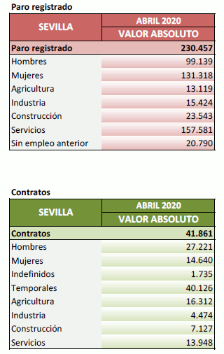 Datos sobre paro registrado y contratos. Abril de 2020