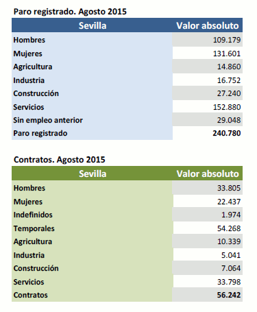 Datos sobre paro registrado y contratos. Agosto de 2015