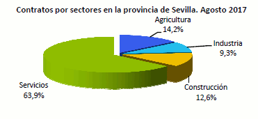En Agosto de 2017, el paro registrado ha descendido en un 7,87% respecto al mismo mes del año anterior. Los contratos realizados en este mes aumentan un 3,73% en términos interanuales