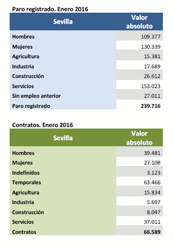 Datos sobre paro registrado y contratos. Enero de 2016