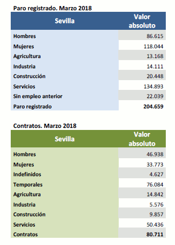 Datos sobre paro registrado y contratos. Marzo de 2018