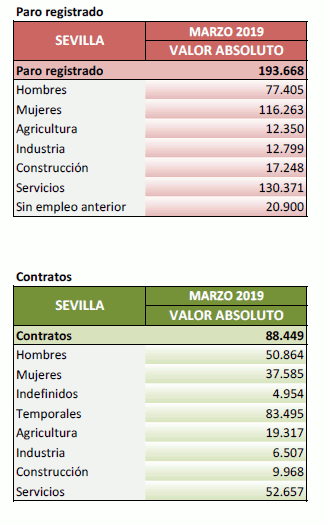 Datos sobre paro registrado y contratos. Marzo de 2019