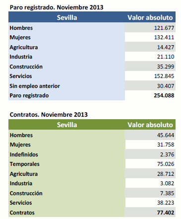 Datos sobre paro registrado y contratos. Noviembre de 2013