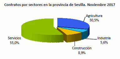 En Noviembre de 2017, el paro registrado ha descendido en un 7,59% respecto al mismo mes del año anterior. Los contratos realizados en este mes aumentan un 1,21% en términos interanuales