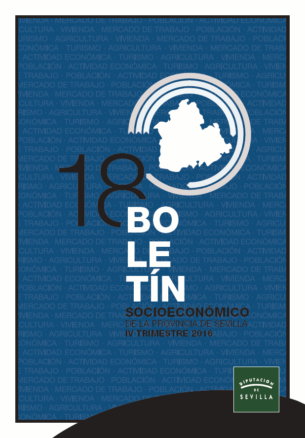 La edición número 18 del Boletín Socioeconómico de la Provincia de Sevilla analiza los datos de coyuntura más relevantes relativos al cuarto trimestre de 2016, y viene a mostrar una evolución favorable de la economía provincial tanto en dicho periodo como en el conjunto del año. De este modo, entre los principales resultados obtenidos al analizar la evolución del mercado de trabajo en la provincia de Sevilla al cierre del año, destacan los datos positivos de descenso del paro y de creación de empleo, a los que se añade un incremento de la afiliación a la Seguridad Social. Por su parte, la actividad turística provincial continúa en 2016 la evolución favorable de años anteriores, obteniendo cifras de crecimiento en la mayoría de los indicadores turísticos; al tiempo que los indicadores de demanda relativos al subsector de la vivienda registran igualmente valores positivos.