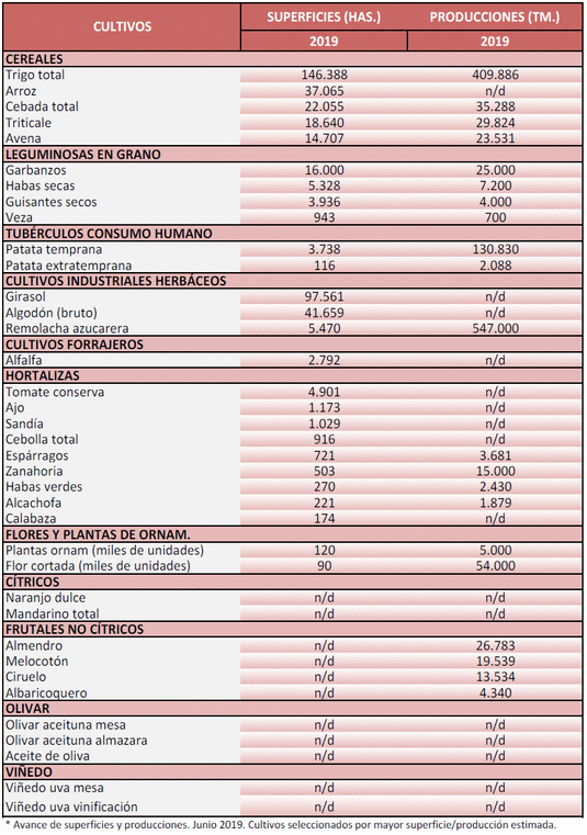 Avance de producciones y superficies agrícolas. Abril 2019