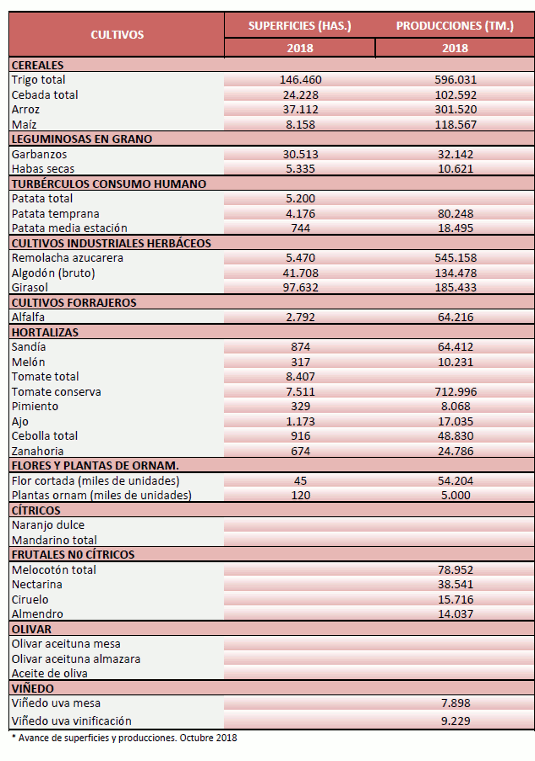 Avance de producciones y superficies agrícolas. Agosto 2018