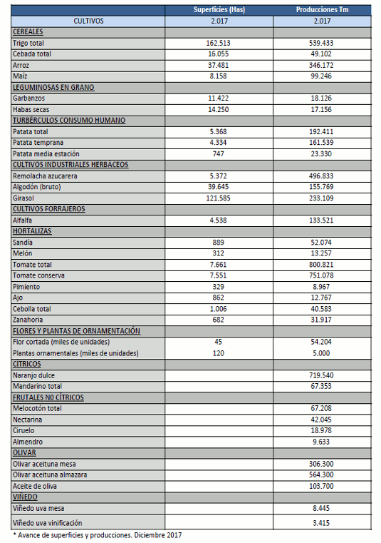 Avance de producciones y superficies agrícolas. Diciembre 2017