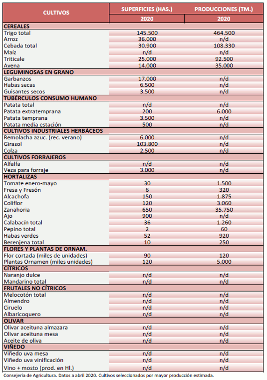 Avance de producciones y superficies agrícolas. Febrero 2020